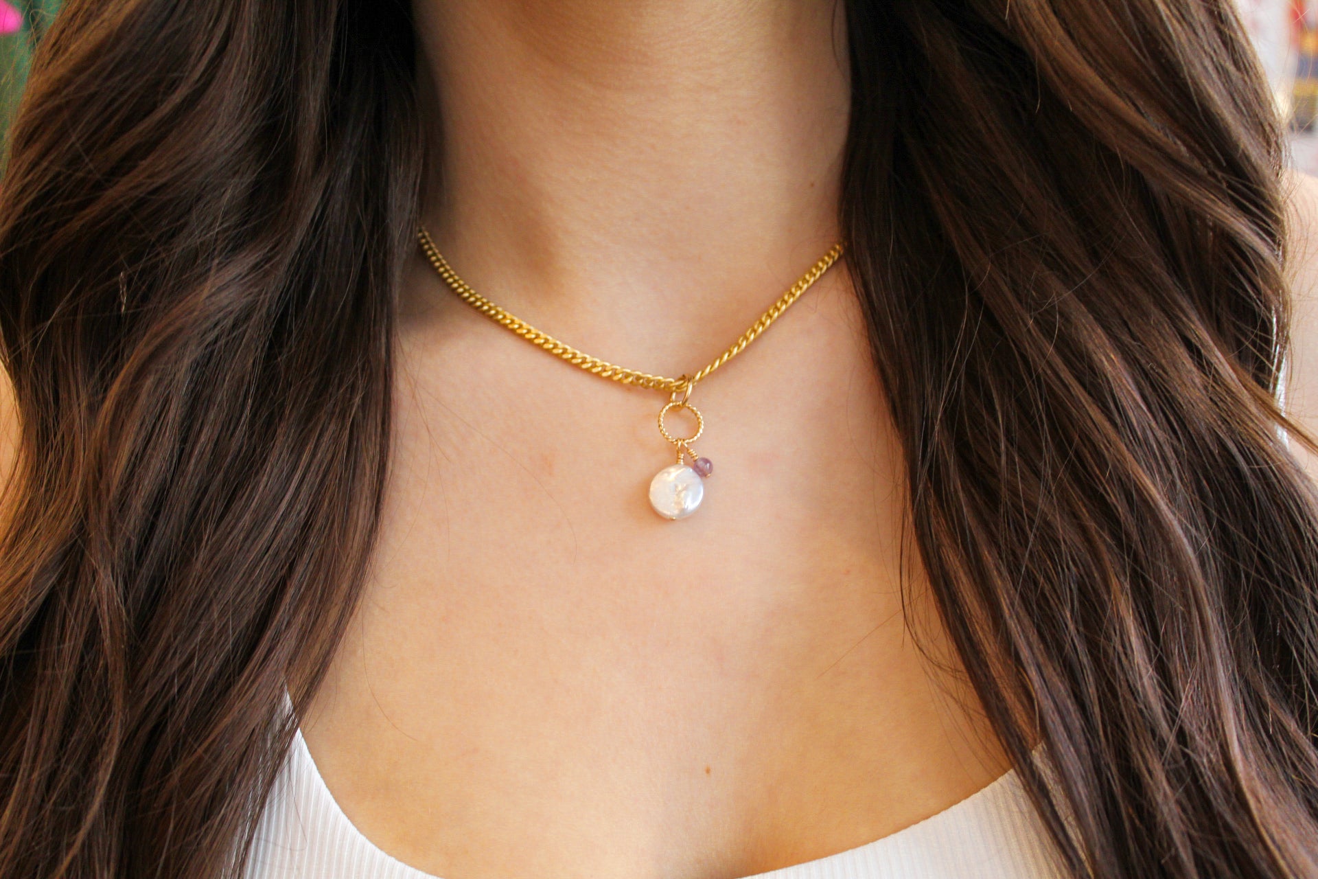 Elevate your everyday elegance with this stunning satin gold curb chain paired with a lustrous pearl pendant. The smooth, brushed finish of the gold creates a sophisticated matte look that catches the light beautifully, while the classic curb chain design offers timeless appeal. The creamy pearl pendant adds a touch of refined femininity and pairs effortlessly with any outfit—dress it up for special occasions or wear it casually for instant polish. A versatile piece that brings understated luxury to your jewelry collection. If you would like a specific style please note which one!