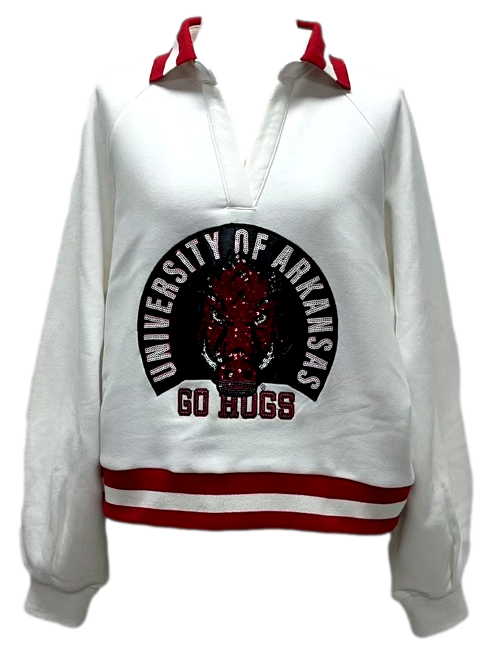 Cheer on the Razorbacks in style with the Razorback Seal Varsity Sweatshirt! This soft, cozy sweatshirt is perfect for game day, combining comfort with a playful sparkle fit for the queen of sparkles. Show your team spirit while staying warm and comfy—because every Razorback fan deserves to shine!