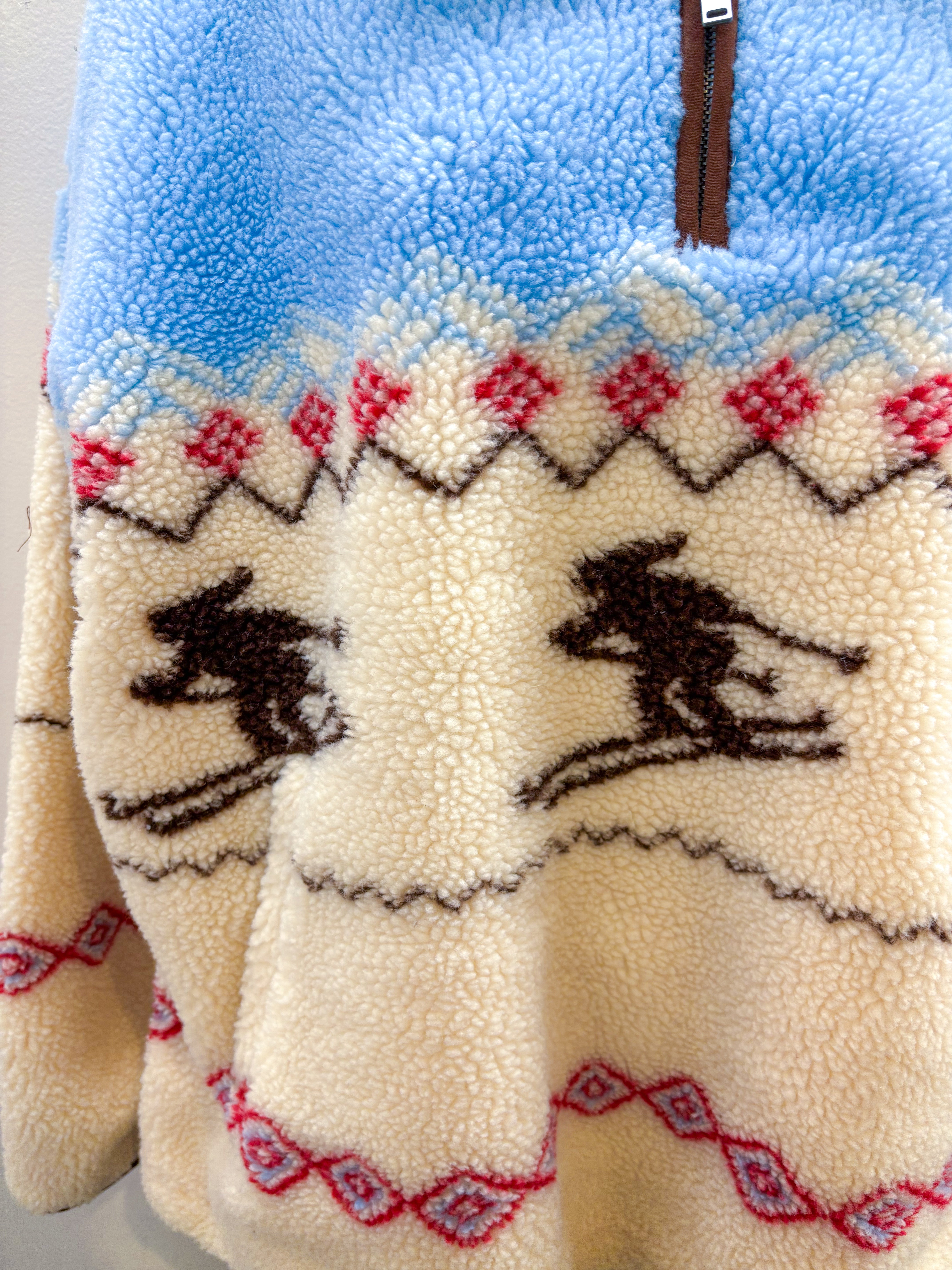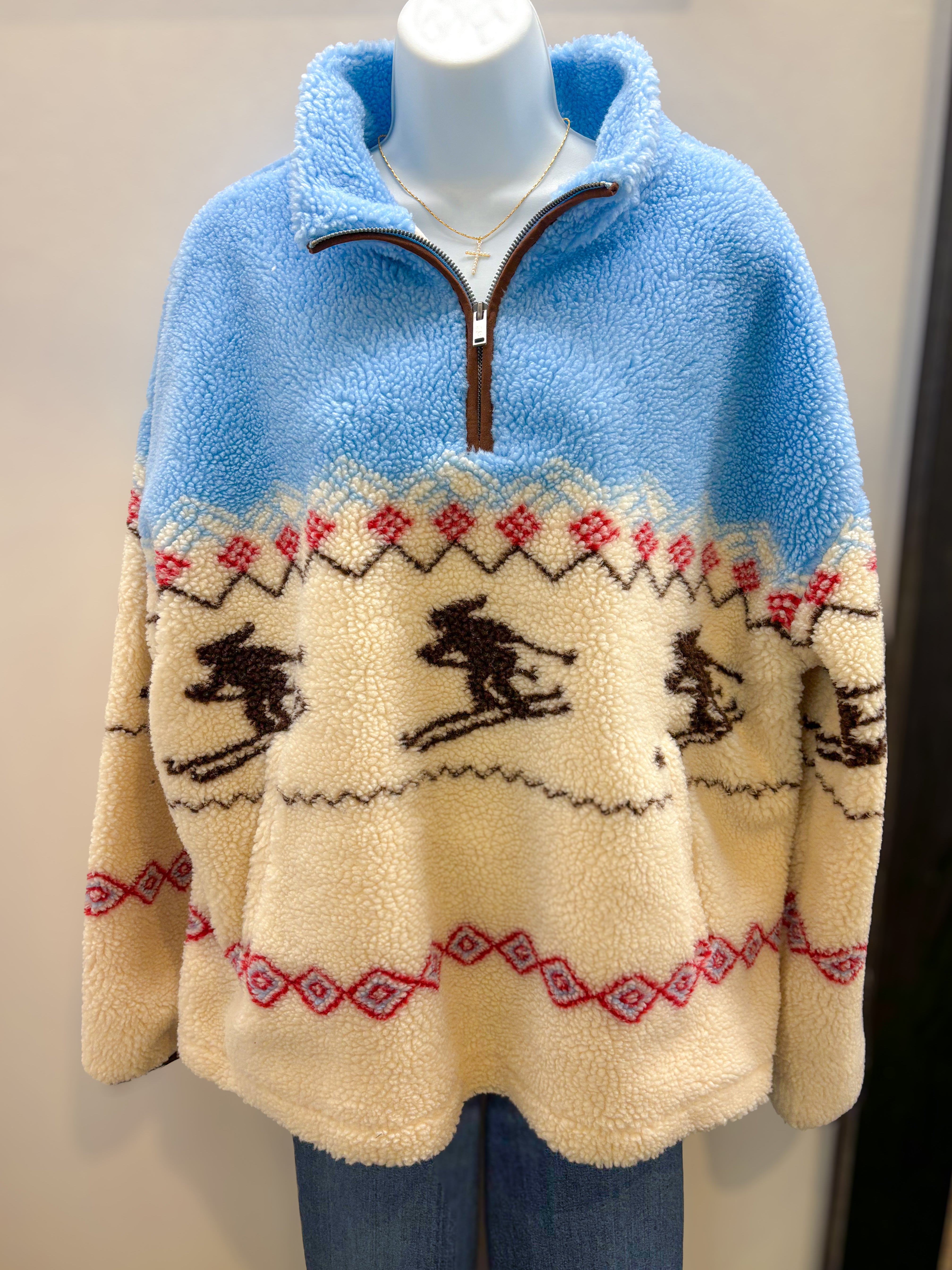 Heavy sherpa pullover with half zip closure.
