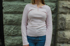 Designed for a casual yet chic look, the Bobi Slim Button Henley is a must-have addition to any wardrobe. Made with soft and durable fabric, this long sleeve quarter button down shirt baby pink is perfect for all-day comfort and effortless style.