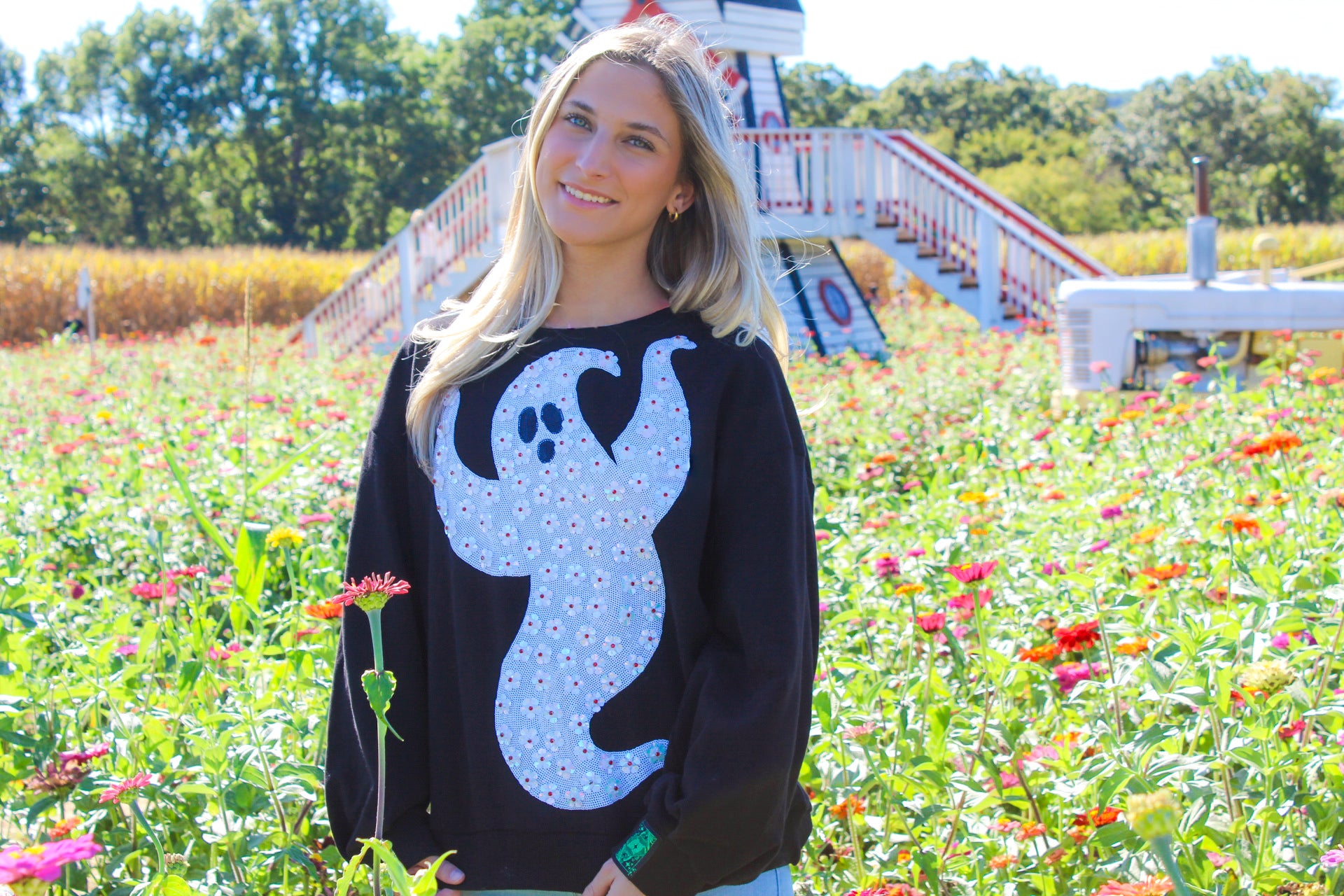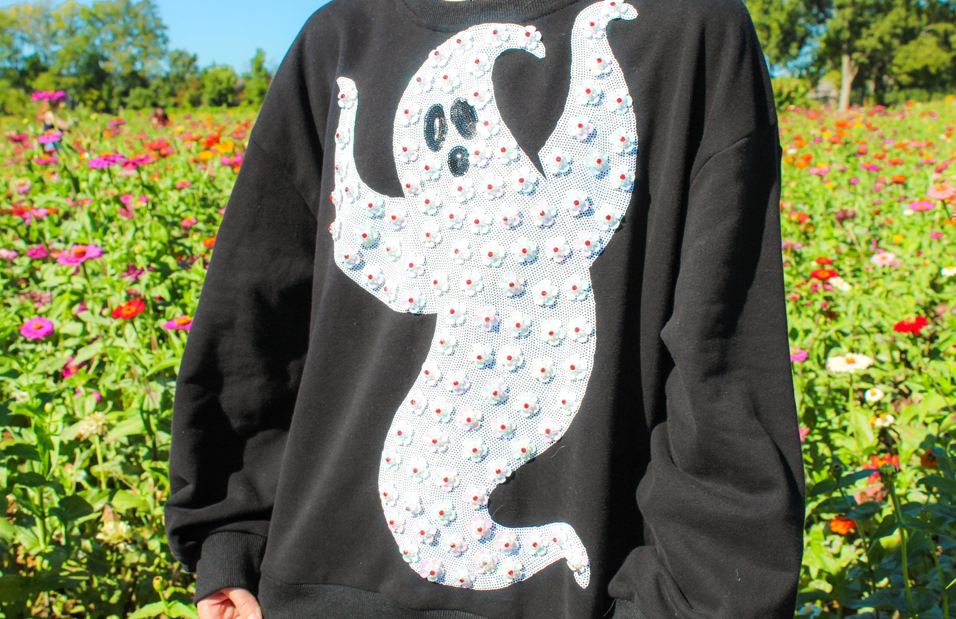 BLACK & WHITE FLOWER SEQUIN GHOST SWEATSHIRT