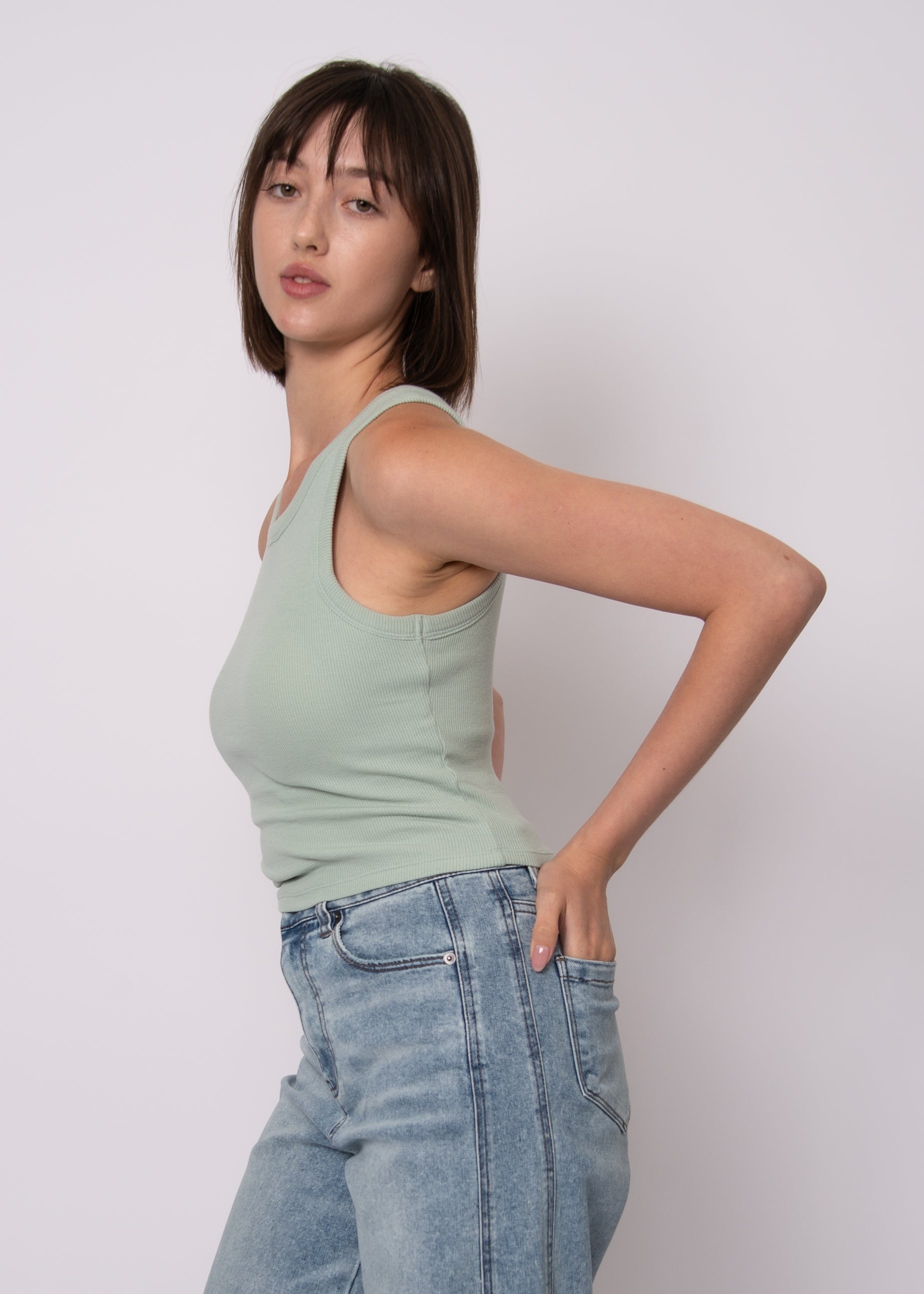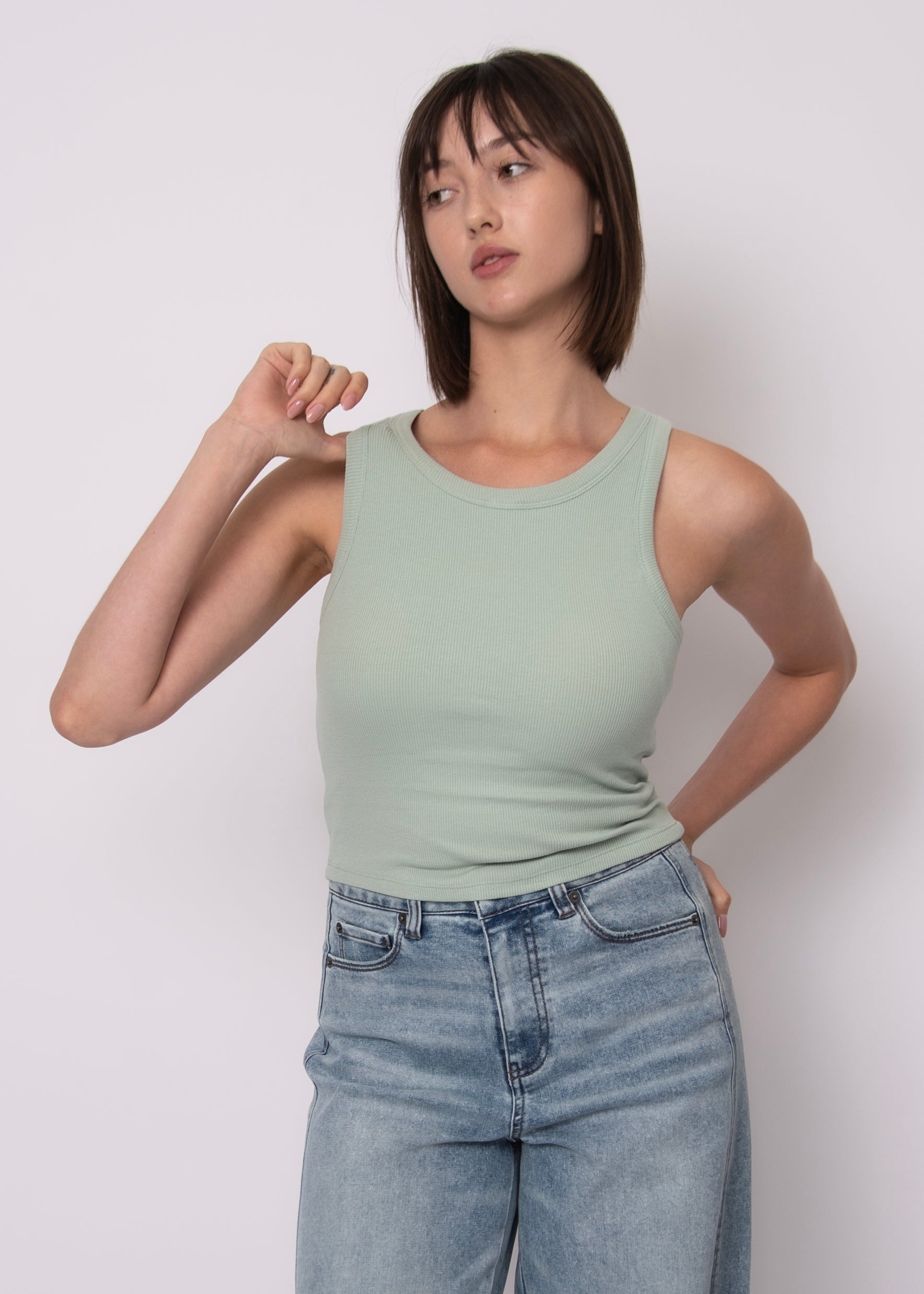 Soft, stretchy ivy green ribbed tank with built in bra. Perfect for layering and wearing all summer!