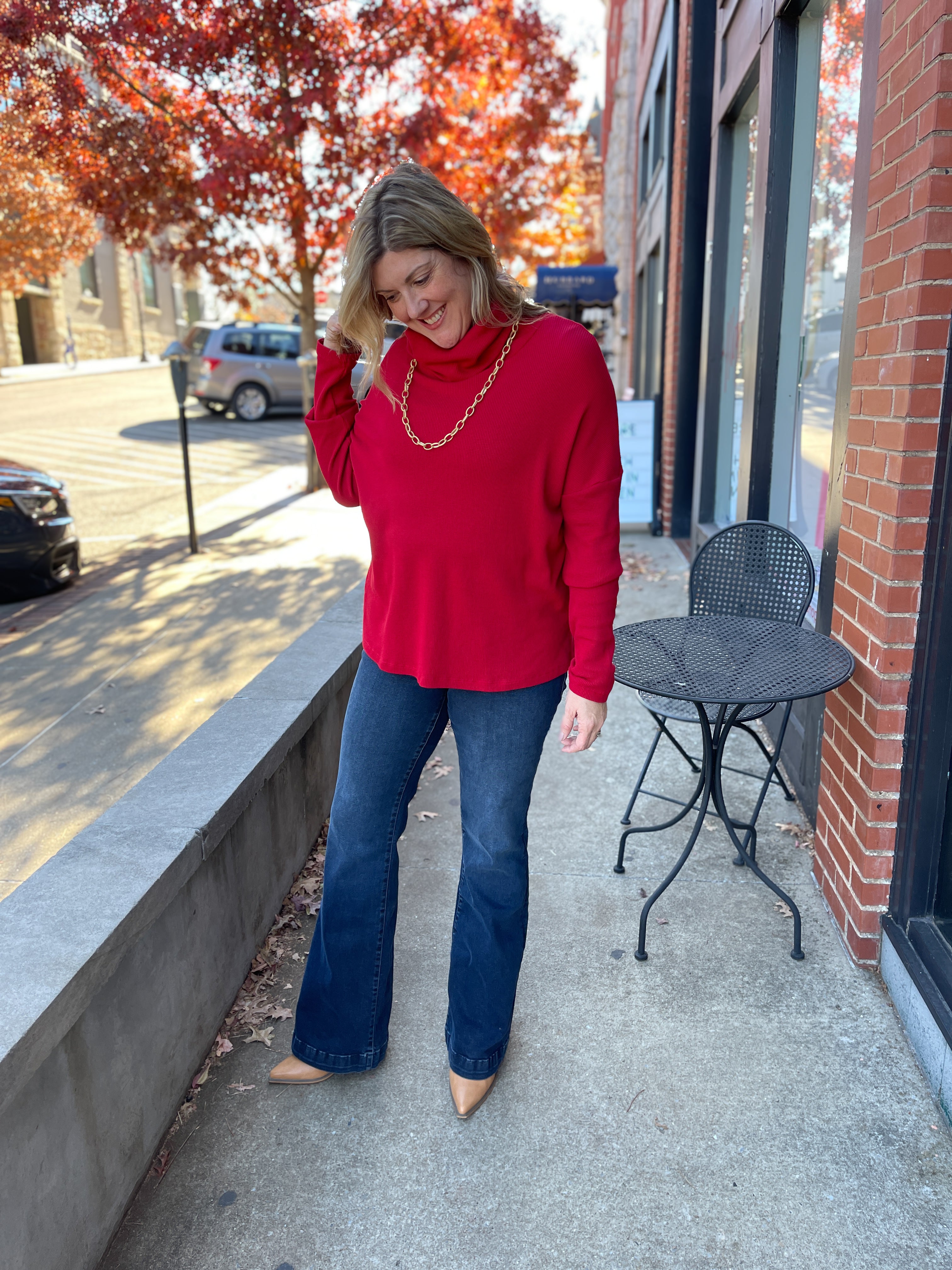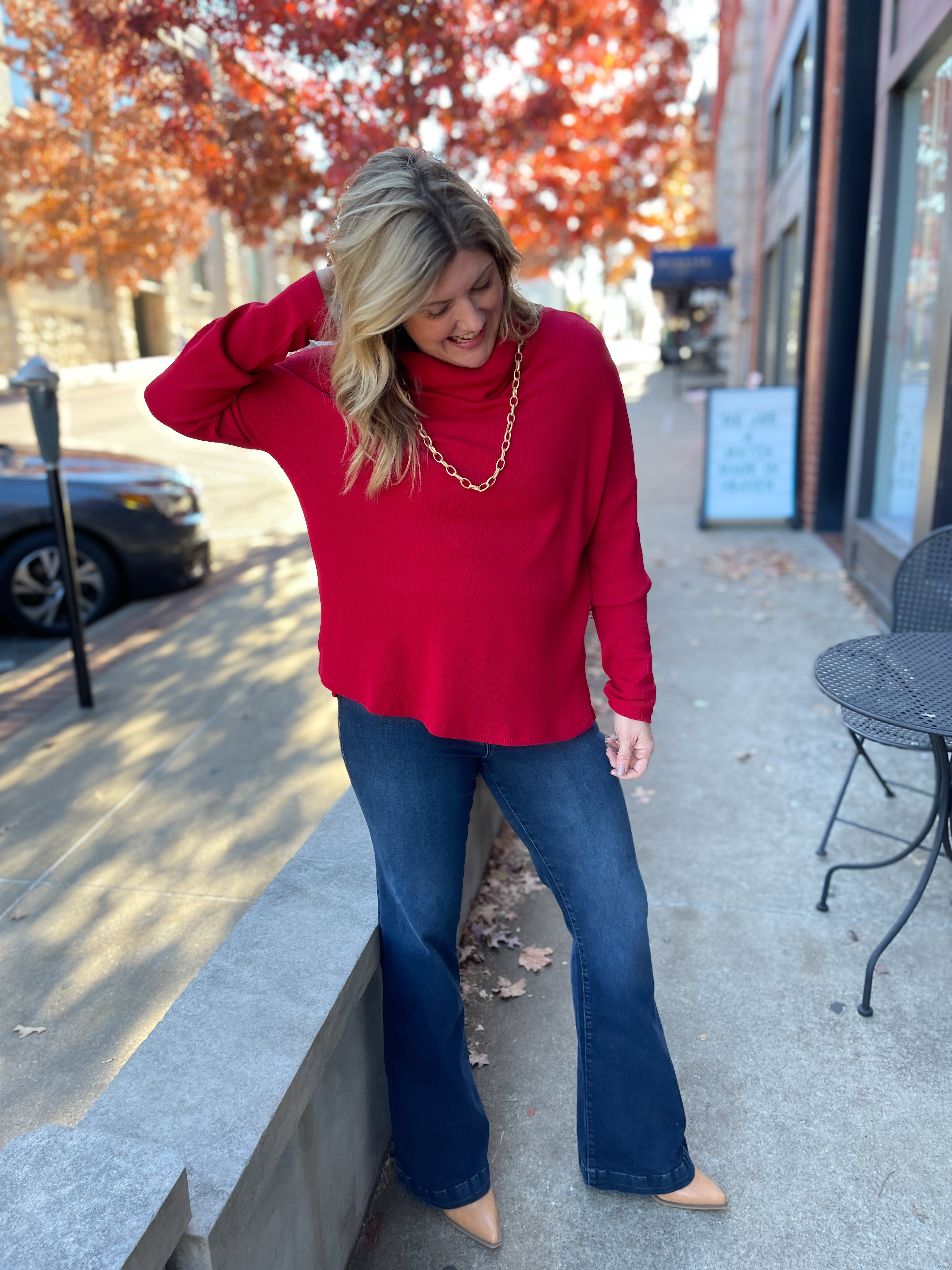 Red Waffle Knit Top