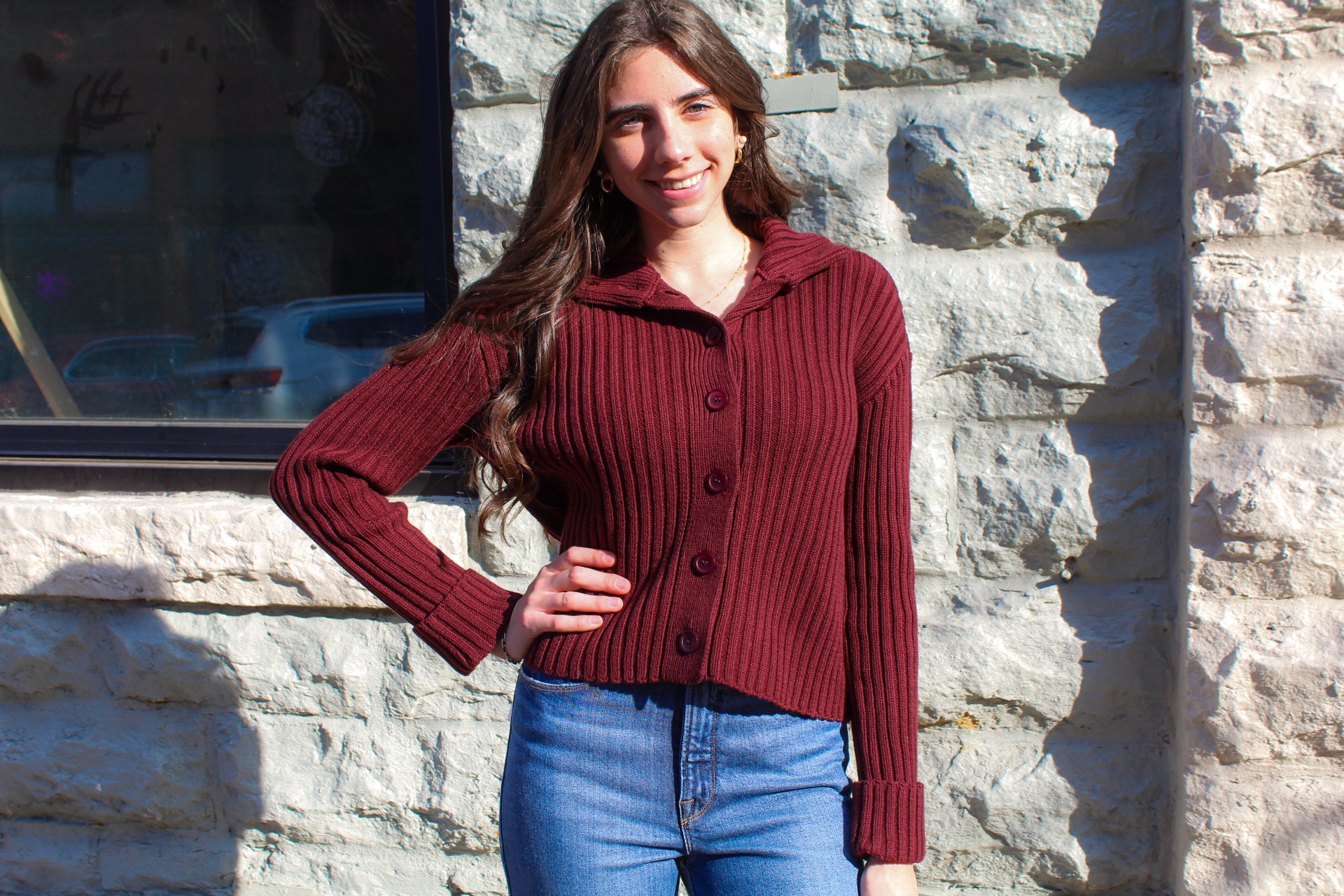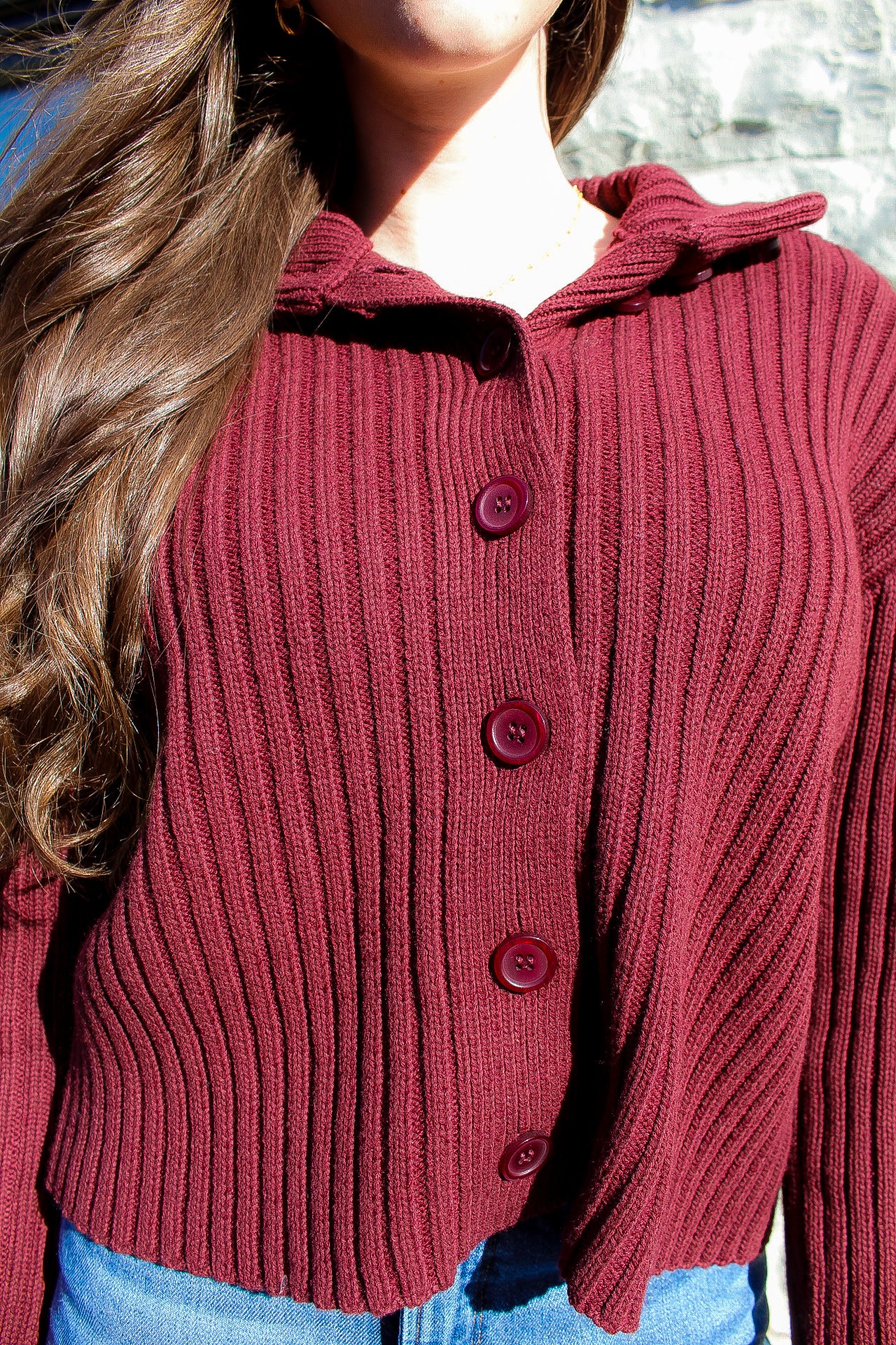 Features a long sleeve mock neck design in a deep burgundy color, this cardigan will keep you warm and stylish. Perfect for layering, its versatile design can be dressed up or down for any occasion. Embrace comfort and style with the Lakshmi cardigan.