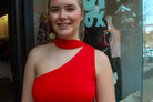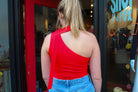 Second Skin fitted top with asymmetrical one shoulder fit and neck tie for extra fun!