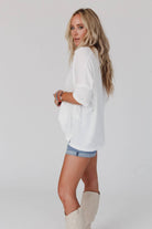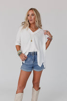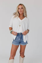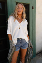 So comfy with an effortless boho silhouette, the On The Go V Neck Ribbed Essential Tee is a must-have! A boho essential because: * Comfy and stretchy ribbed knit fabric that moves with you all day long * Relaxed and loose silhouette with a flattering v-neckline * Dropped shoulders with 3/4 length sleeves for a laid-back and relaxed vibe * Mini side slits along the side for added comfort and style *Due to lighting and differences in monitors, actual colors may vary slightly from what appears online.