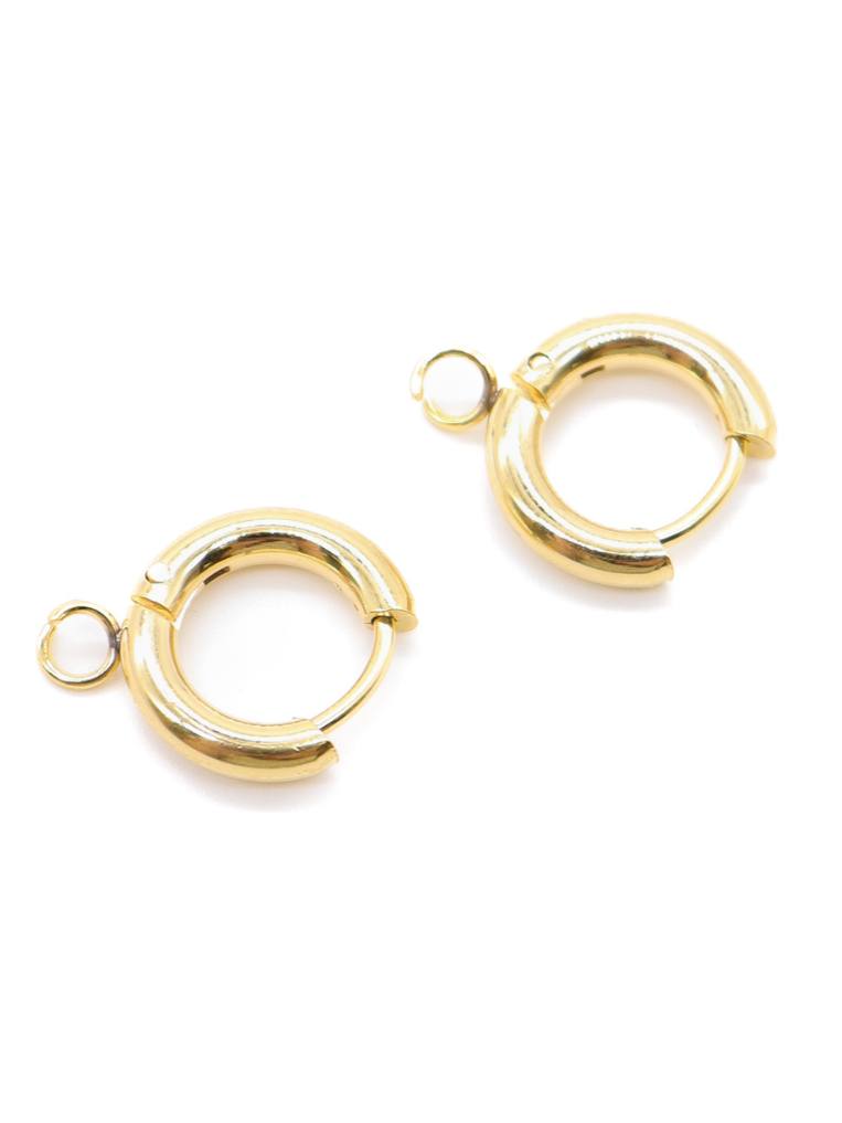 * 201 Stainless Steel Huggie Hoop Earring Finding. Charm must be attached to Earring Finding with Tools for Semi-Permanent Mount.