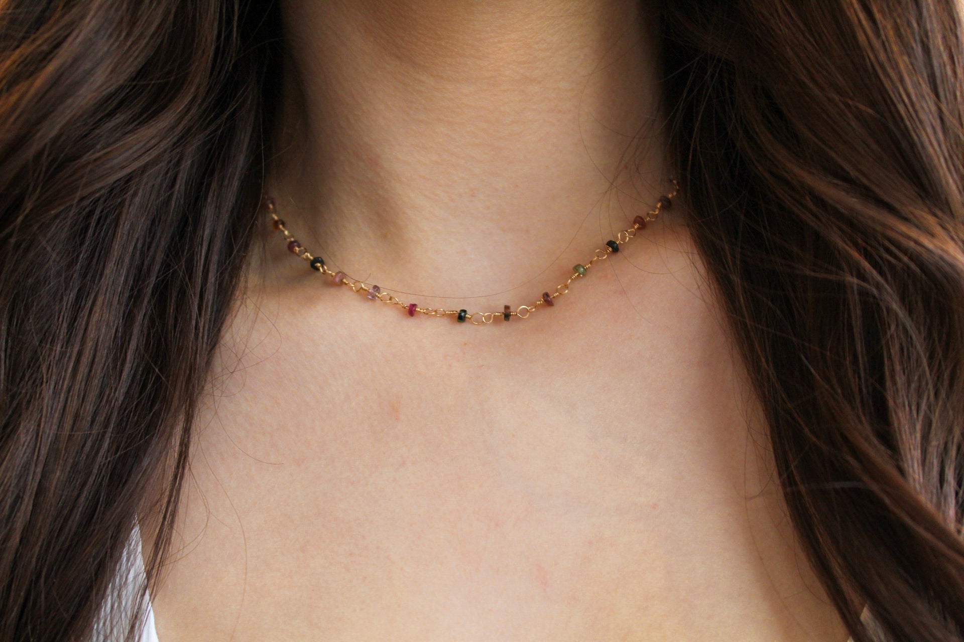 Dive into gemstone bliss with this stunning gold filled necklace featuring your choice of scattered treasures! Pick amethyst for calming purple vibes, opal chip for dreamy iridescent sparkle, or watermelon tourmaline for that sweet pink-and-green combo that's totally Instagram-worthy. Each gem is thoughtfully placed along the delicate gold filled chain, creating a personalized piece that's uniquely you. Mix and match with your mood, your outfit, or your energy—this versatile beauty adapts to whatever vibe you're channeling. Durable, dazzling, and endlessly fun, it's the necklace that keeps on giving.