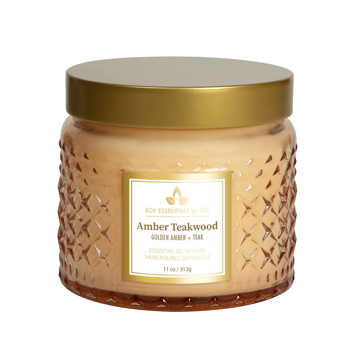 The SOi Company - Amber Teakwood 11oz Faceted Glass Jar Soy Candle