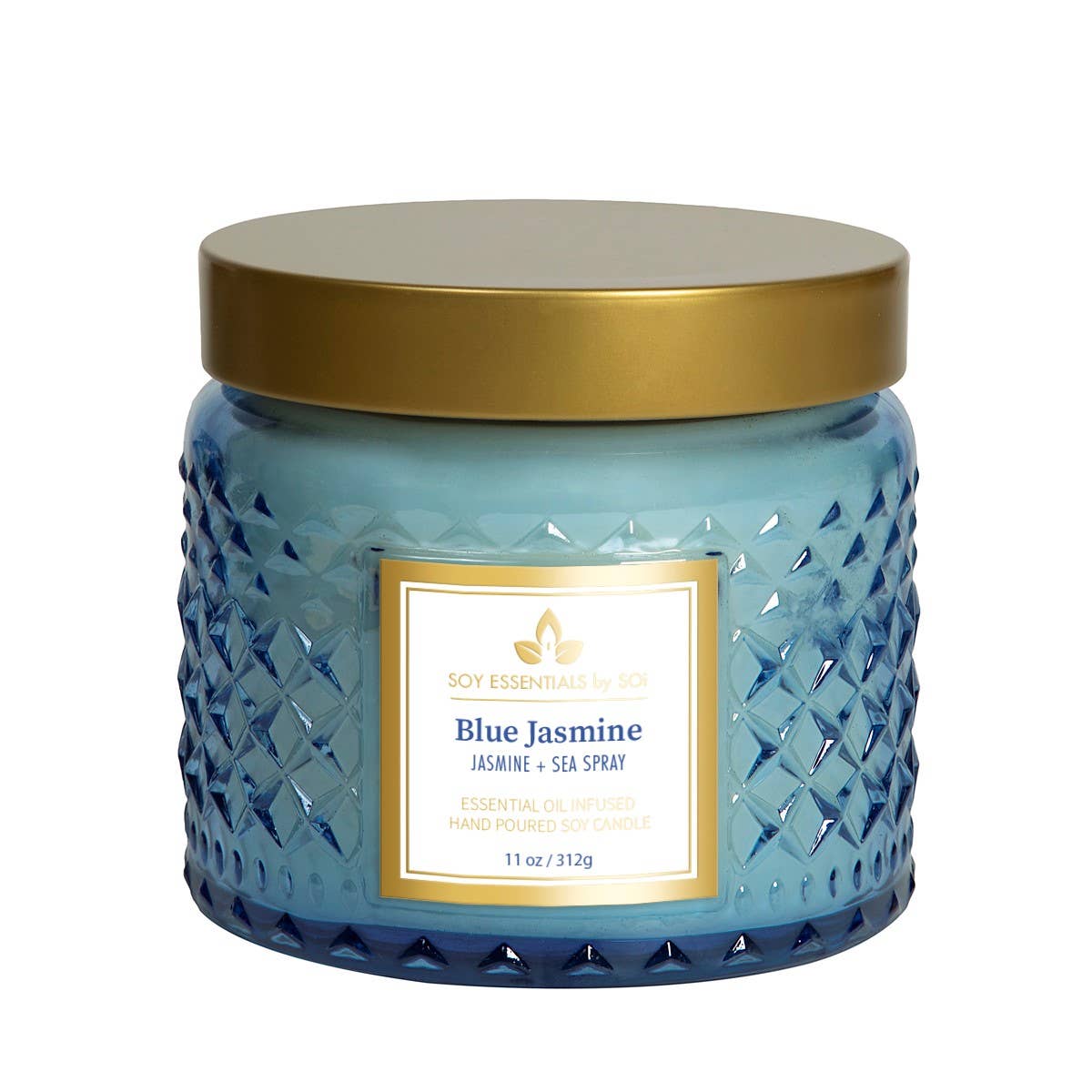 The SOi Company - Blue Jasmine 11oz Faceted Glass Jar Soy Candle